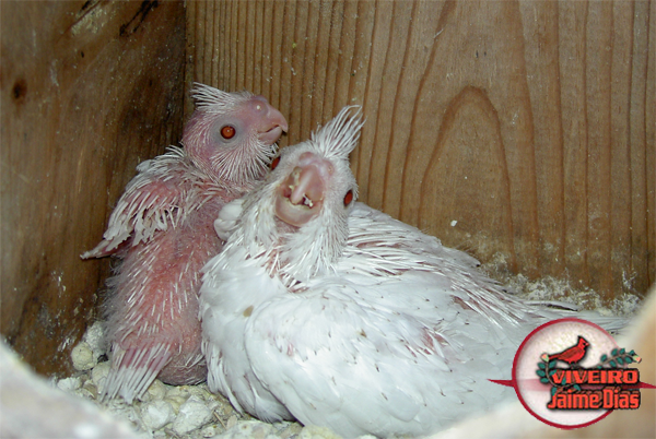 A plumagem tem início após quatro ou cinco semanas, aproximadamente. As crias continuam a ser alimentadas pelos progenitores, mas ao fim de sete ou oito semanas são totalmente independentes. Durante toda a época de gestação, deve proporcionar às aves uma ração diária de alimento à base de ovos e alimentos verdes frescos, além da mistura de sementes. Por volta dos seis meses de vida, as calopsita atingem, a maturidade sexual. Antes dessa fase, os machos não terão ainda adquirido a plumagem definitiva.